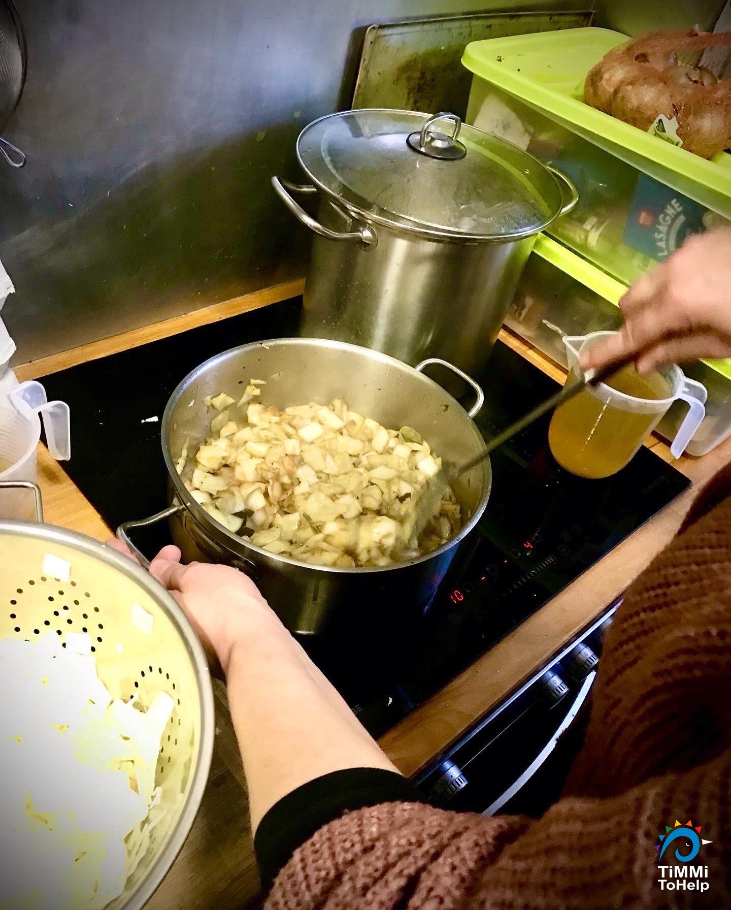 Heute sind wir zu viert am Start. Weil wir es letzte Woche nicht geschafft haben, bereiten wir heute die beiden Melonen vor und schneiden sie für unsere Klient:innen vor. Aber das Messer hatte wohl keine Lust mehr. Messer 0, Melone 1